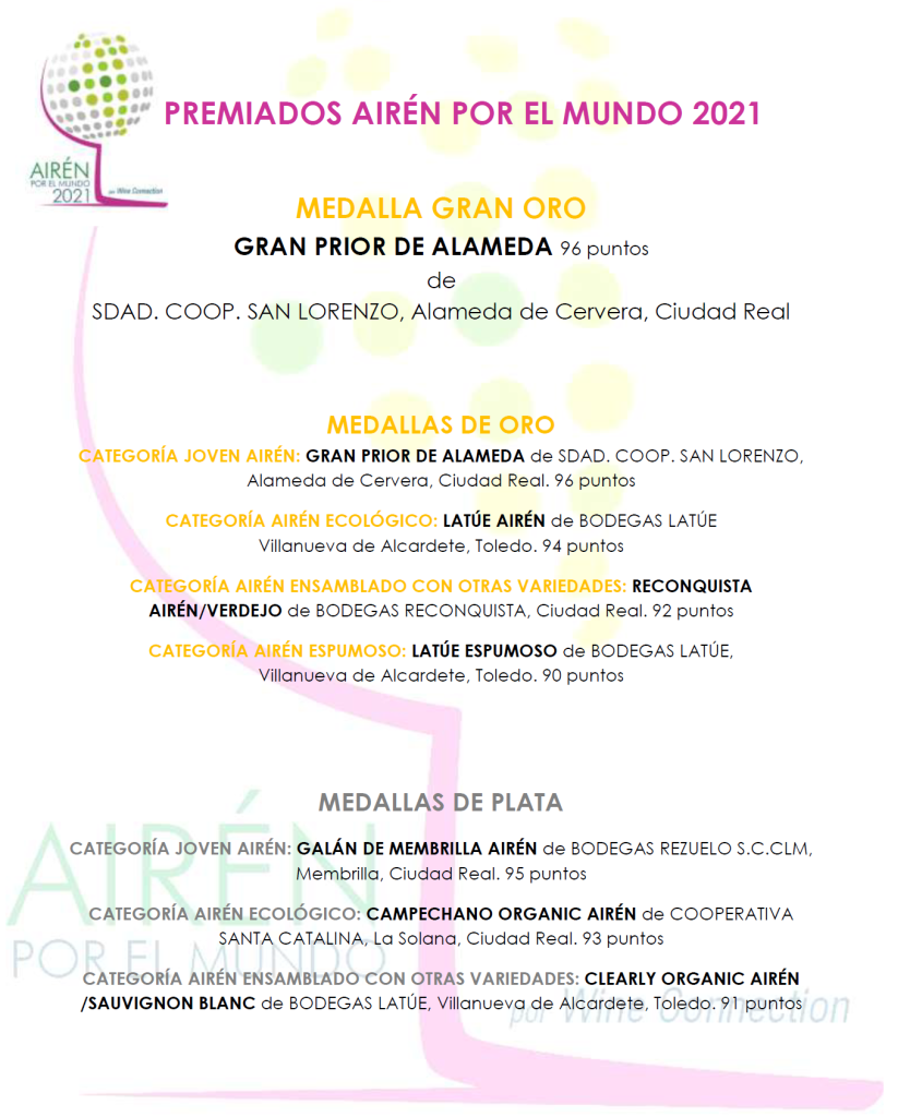 Wine Connection abre el 1 de marzo la convocatoria de la IX Edición de los Premios Airén por el Mundo, las bodegas interesadas podrán inscribirse hasta el próximo 2 de abril a través de la página web www.airenporelmundo.es.